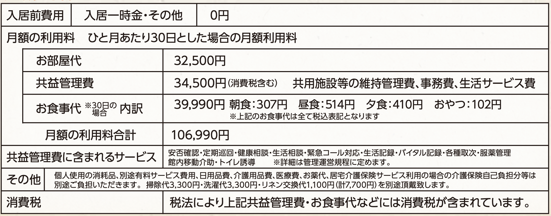 具体的な費用については、入居前に詳しくご説明させていただきます。